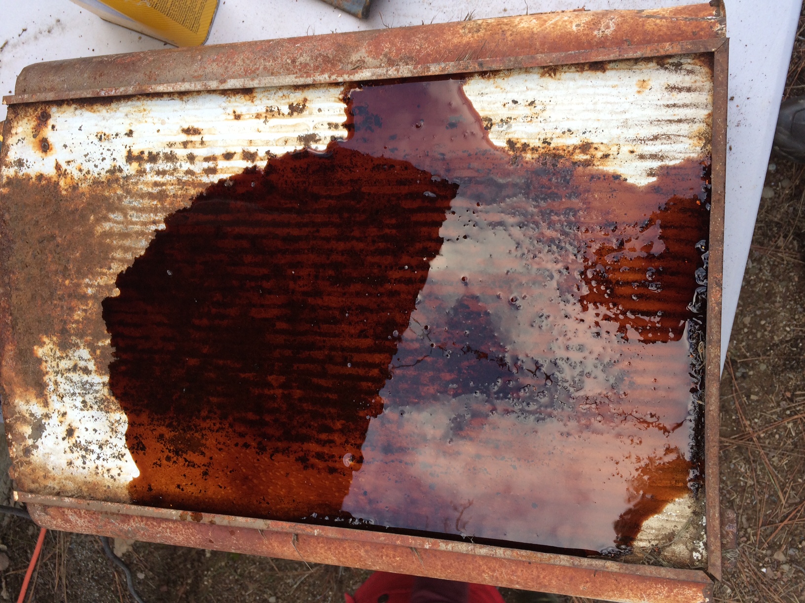 I took the 4-inch angle grinder that I used here to make a distressed metal display board and started grinding. These tools are powerful so get some earplugs and eye protection and use a strong grip. I ground off as much paint and rust as I could to reveal the metal beneath.